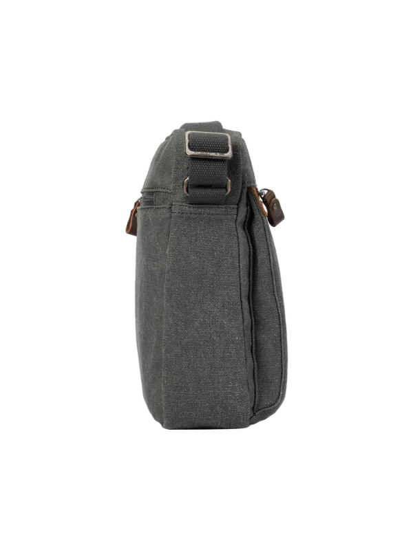 - Adjustable canvas shoulder strap with stylish and functional, brass plated buckles;